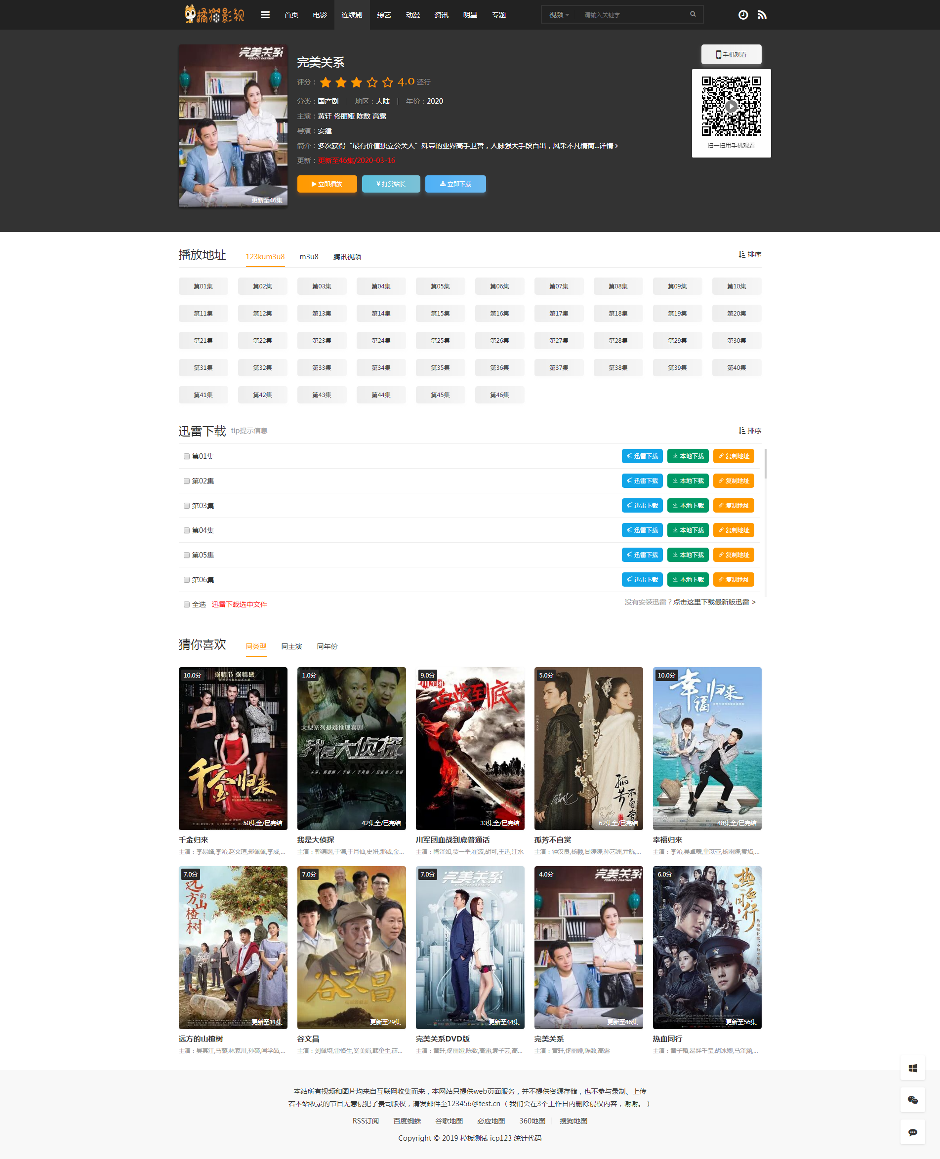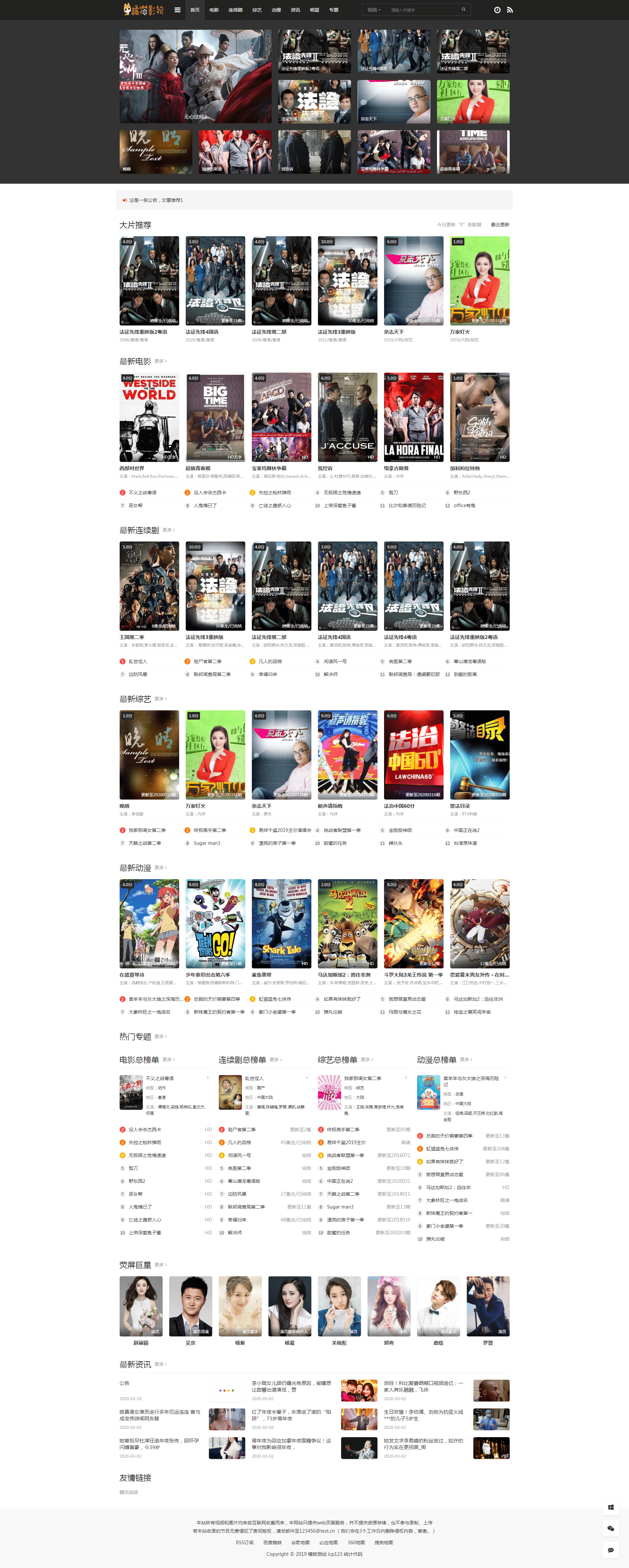 修复wap端底部遮挡问题26套前端版本,无主题后台,明星,专题,会员,资讯都有。模板使用教程1、LOGO更换在苹果cms后台上传就行了,二维码图片在imags路径替换。2、首页轮播推荐9,数量最多10个。3、轮播右边自动调用2020年最新11部影片。3、大片推荐是推荐1,数量最多6个。4、荧屏巨星明星推荐1,数量最多8个。5、新增影片下载模块。6、新增播放页增加切换线路提示语,播放器增加滚动提示语。7、首页新增公告,文章推荐1就是公告内容。8、其他更多功能,请自行体验。