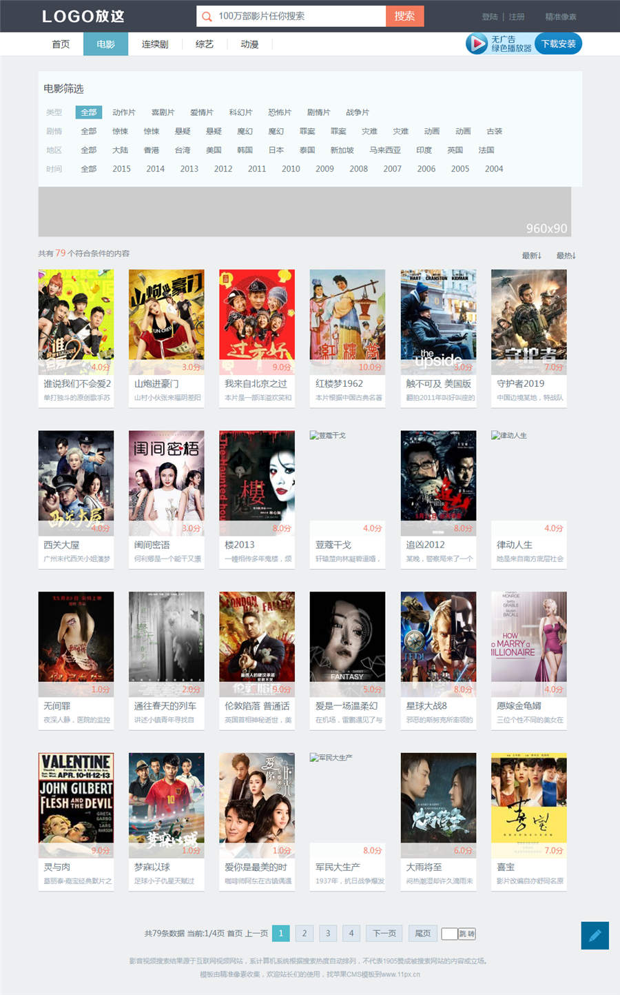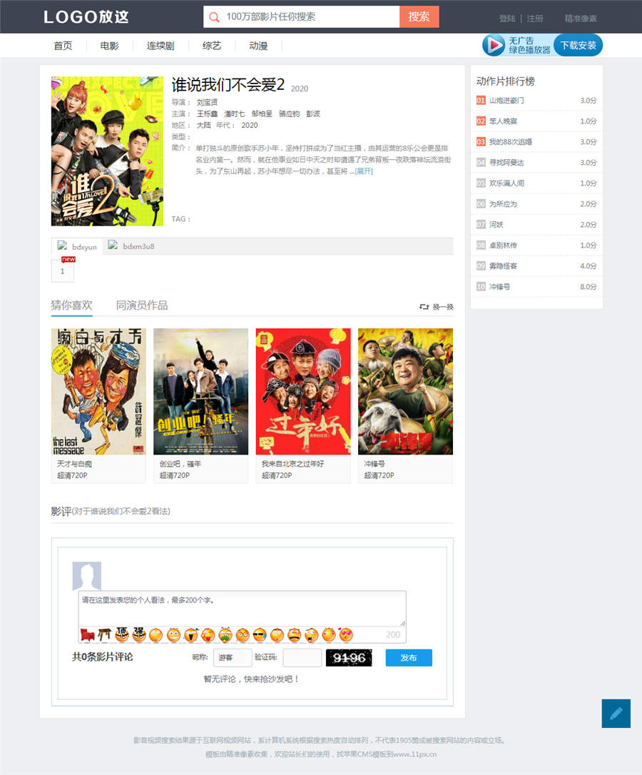 | 模板安装教程: 1.将模板v1905上传至网站template文件夹内。 2.登陆苹果cms后台-系统管理-当前使用模板-替换新模板v1905 3.点击视频-视频分类-更换电影分类为movie.html电视剧tv.html动漫dm.html综艺zy.html 4.模板html目录更换为xiaog-html 5.点击数据缓存更新,内存数据更新,文件缓存更新。 6.播放器宽度调整970高度450最佳。 7.点击站点首页查看效果吧! 模板截图: |