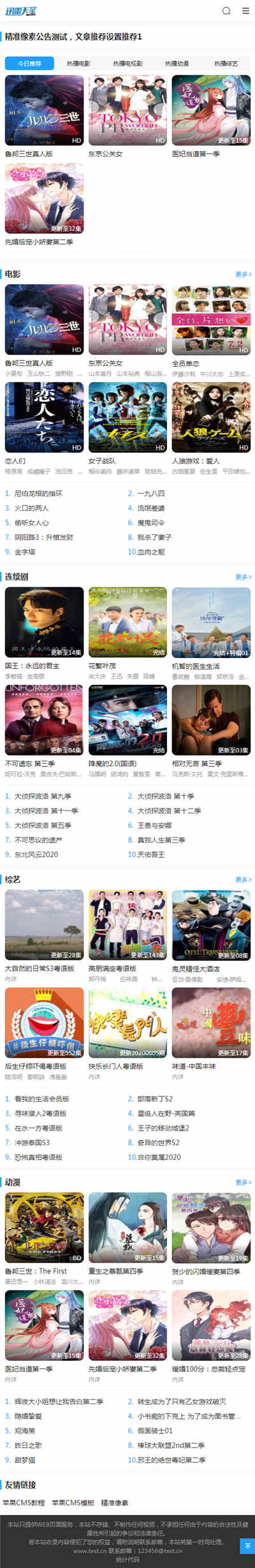 | 苹果CMS模板简介: 仿迅雷天堂苹果cms10模板,已测试完美无错,仿迅雷天堂主题模板,苹果CMSV10模板,自适应手机端。模板包含电影、资讯、留言板、搜索。 苹果cms模板安装教程:①上传到模板目录后台选择该模板即可。 |