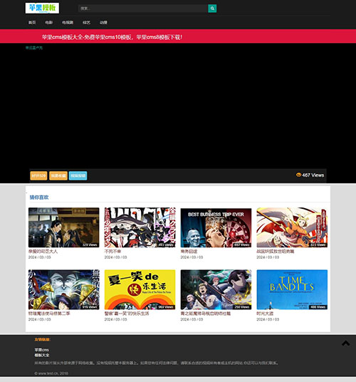 采用黑红撞色设计,页面结构简单,特别适合于做电影站、X站,代码是自适应兼容pc/wap访问!