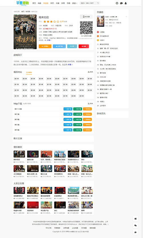 经典白色简约设计,页面设计细节感拉满,该模板原版售价298元,现在等于是免费就能拿走,并且剔除了原版中存在暗链;内容页带迅雷下载模块,特别适用于影视站,代码兼顾pc、wap自适应访问,推荐模板!