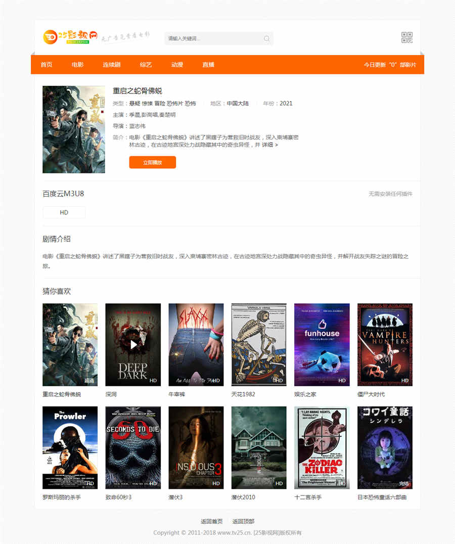 苹果CMSV10仿25影视网自适应苹果CMS模板 自适应模板苹果CMS2025-06-26点击下载 加载中 18 模板安装教程:直接上传文件夹到template目录,后台设置即可。下载地址:https://wwxu.lanzoup.com/iOcUM2bo594b © 版权声明 文章版权声明 1、本网站名称:苹果CMS 2、可能会帮助到你: 站长工具 | 图片压缩 3、如若转载,请注明文章出处: 4、若作商业用途,请联系原作者授权,若本站侵犯了您的权益请 联系站长 进行删除处理。 5、本站一切资源不代表本站立场,并不代表本站赞同其观点和对其真实性负责。 6、本站所有内容均来源于网络,仅供学习与参考,请勿商业运营,严禁从事违法、侵权等任何非法活动,否则后果自负。 7、本站资源大多存储在云盘,如发现链接失效,请联系我们我们会第一时间更新。