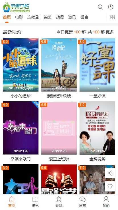– 主题模块:视频 文章 专题 用户中心 站内公告 影院热映