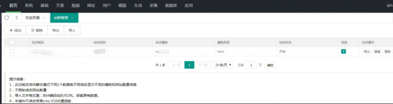 插件支持:导入导出子网站数据。子网站列表分页、无限添加子网站。子网手机版、电脑模板、模板目录等设置子网站logo、自适应设置子网站开关和关闭提示注意事项: