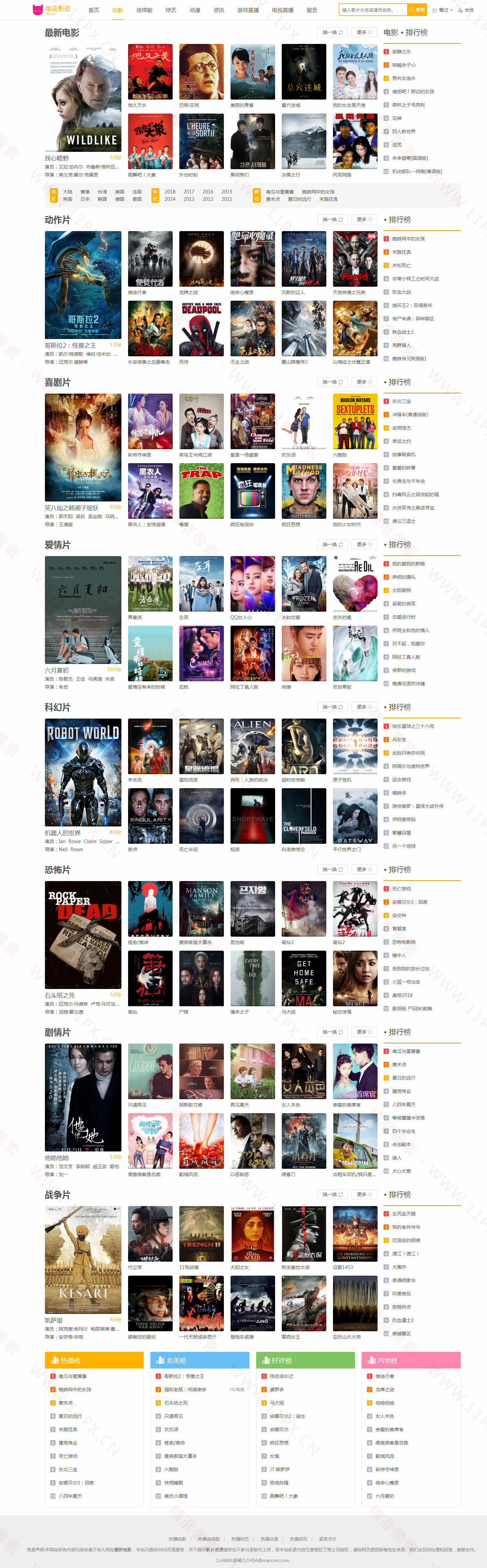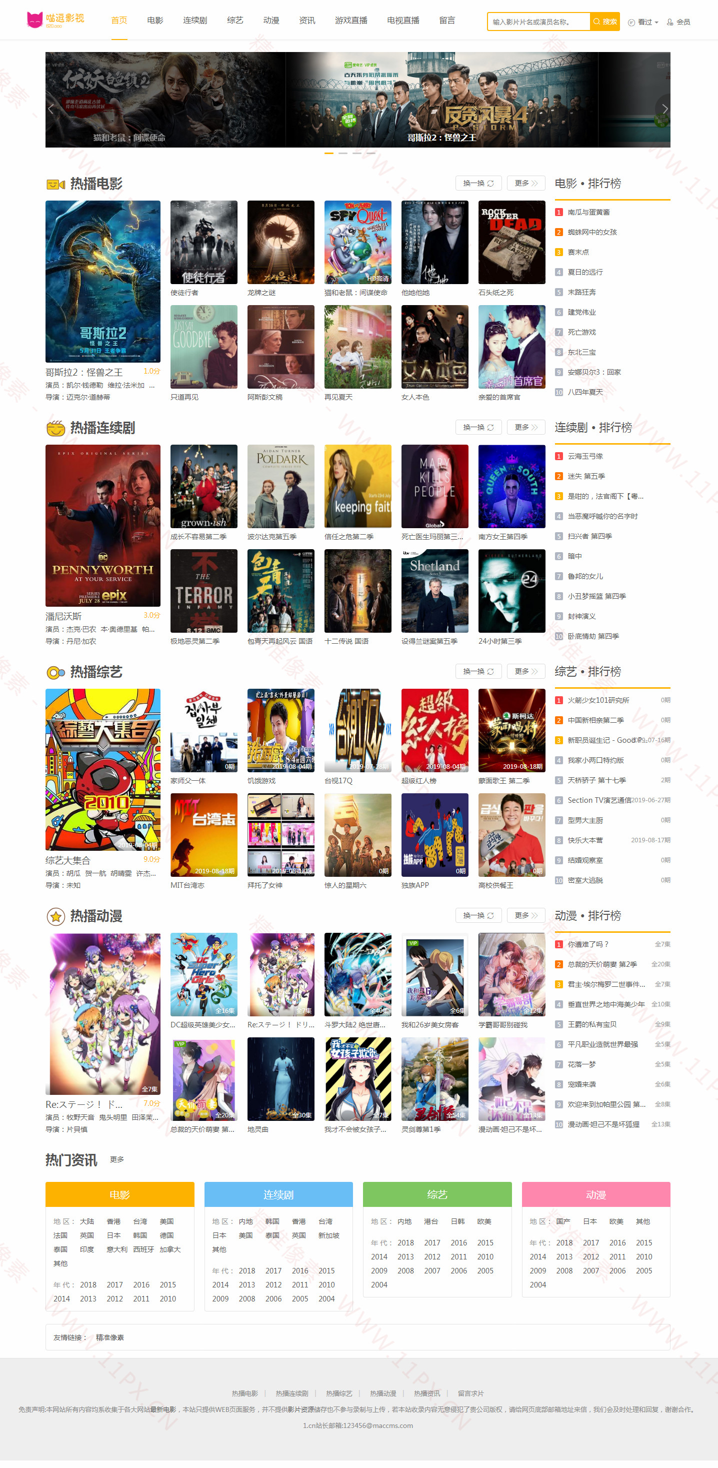 已测试苹果CMSV10喵逗影视模板,基于苹果CMSV10系统开发,网站模板分为首页、列表页、内容页、播放页。